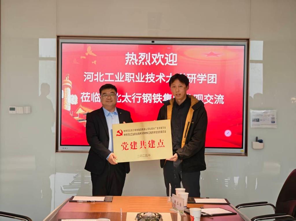进一步夯实合作基础,材料工程学院在河北太行钢铁集团有限公司、河北永洋特钢有限公司挂牌设立“教师企业工作站”与“党建共建点”,推动校企合作从阶段性交流转向常态化互动,为未来开展定向培养、实习实训、联合研发等工作提供了有力支撑。