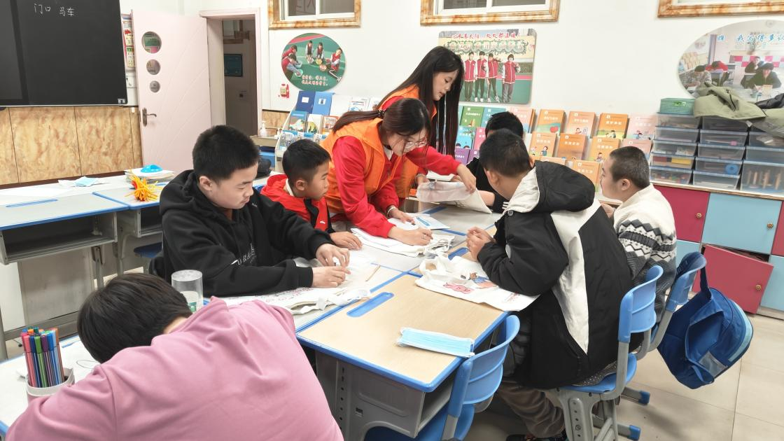 我校学生志愿者为特殊学生上绘画课