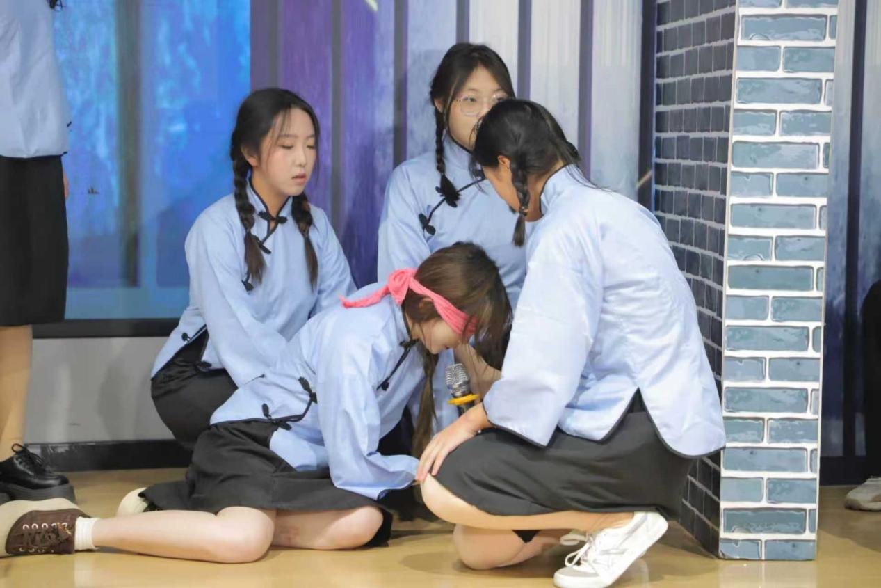 12月19日“青春献礼新时代”红色情景剧展演圆满落幕,为学校第二十四届科技文化节画上了圆满句号。此次活动由300余名师生全程参与剧本创编、排练和展演,从史料挖掘到剧本创编,从角色揣摩到舞台呈现,师生通过“教师讲授+情景演绎+现场互动”的形式,将思政教育与文艺表达融合,打造了一堂沉浸式、体验式的现场思政课。
