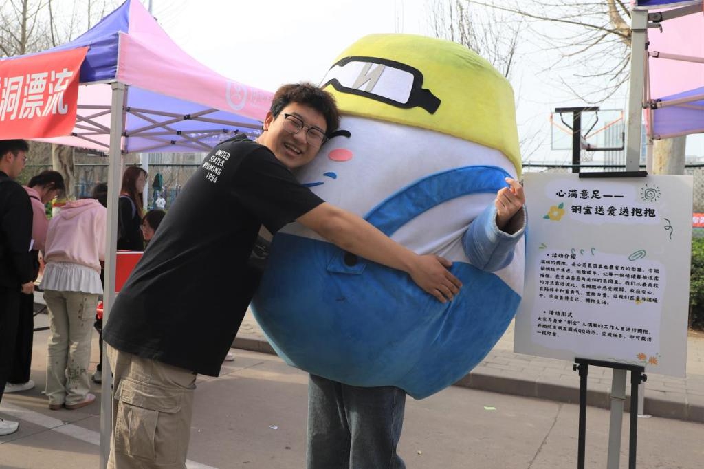 3月25日,由大学生心理健康教育服务中心联合心晴社举办的“心沐春光,悦己向阳”心理体验活动在红旗校区顺利开展。活动现场设置四项打卡环节,让春意与治愈感充盈全场:“心晴治愈”项目中,同学们提笔写下内心的困惑与心事,或主动抽取纸条获取暖心安慰,在文字的传递中实现情绪倾诉与心灵慰藉;“心满意足”的环节备受欢迎,可爱的吉祥物钢宝现身现场,与同学们热情互动、送上温暖拥抱,用治愈的陪伴驱散烦恼、传递快乐;“心心相印”背夹球考验着彼此的默契与配合,两人协作夹球前行,在欢声笑语中增进信任、拉近距离;“神笔马良”活动则凝聚着团队智慧,3至6名同学携手操控长笔,共同绘制美好图案与文字,在协作配合中感受同心聚力的温暖力量。丰富有趣的活动让现场氛围热烈温馨,同学们积极参与、尽情投入,在互动体验中愉悦身心,调节情绪,于轻松氛围中了解心理健康知识,提升心理调适能力。