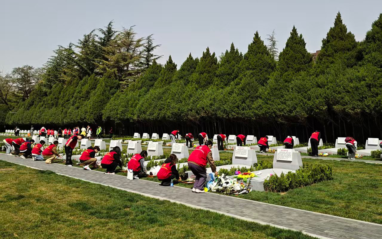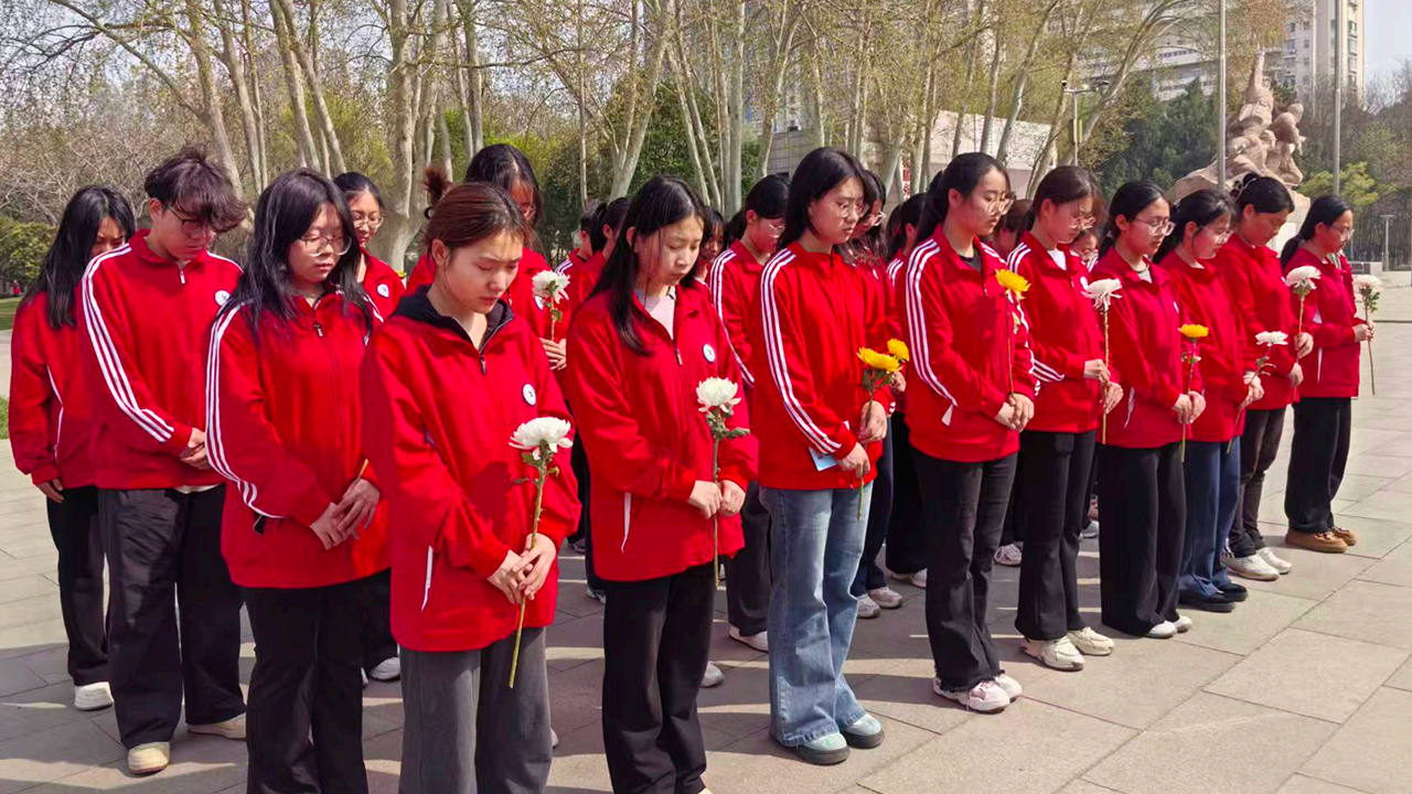 活动期间,学校通过“线下祭扫践初心+线上云祭寄哀思”相结合的方式让更多师生参与其中。4月3日,学校师生代表整齐列队,前往华北军区烈士陵园、平山革命烈士纪念碑等红色教育基地,开展集体祭扫活动,师生们向革命先烈敬献鲜花、肃立默哀,随后通过宣誓仪式表达对先烈的崇高敬意与传承使命的坚定决心。
